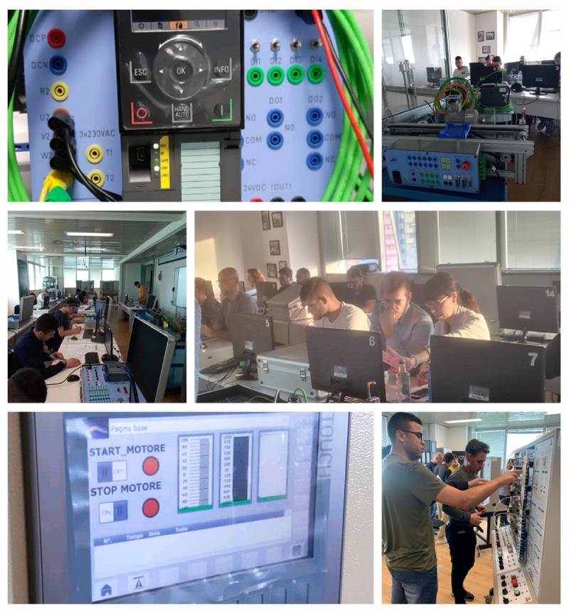 Sistemi meccatronici + Programmazione PLC hardware e software con comunicazione PLC con motori, encoder, inverter, nastri trasportatori e safety.